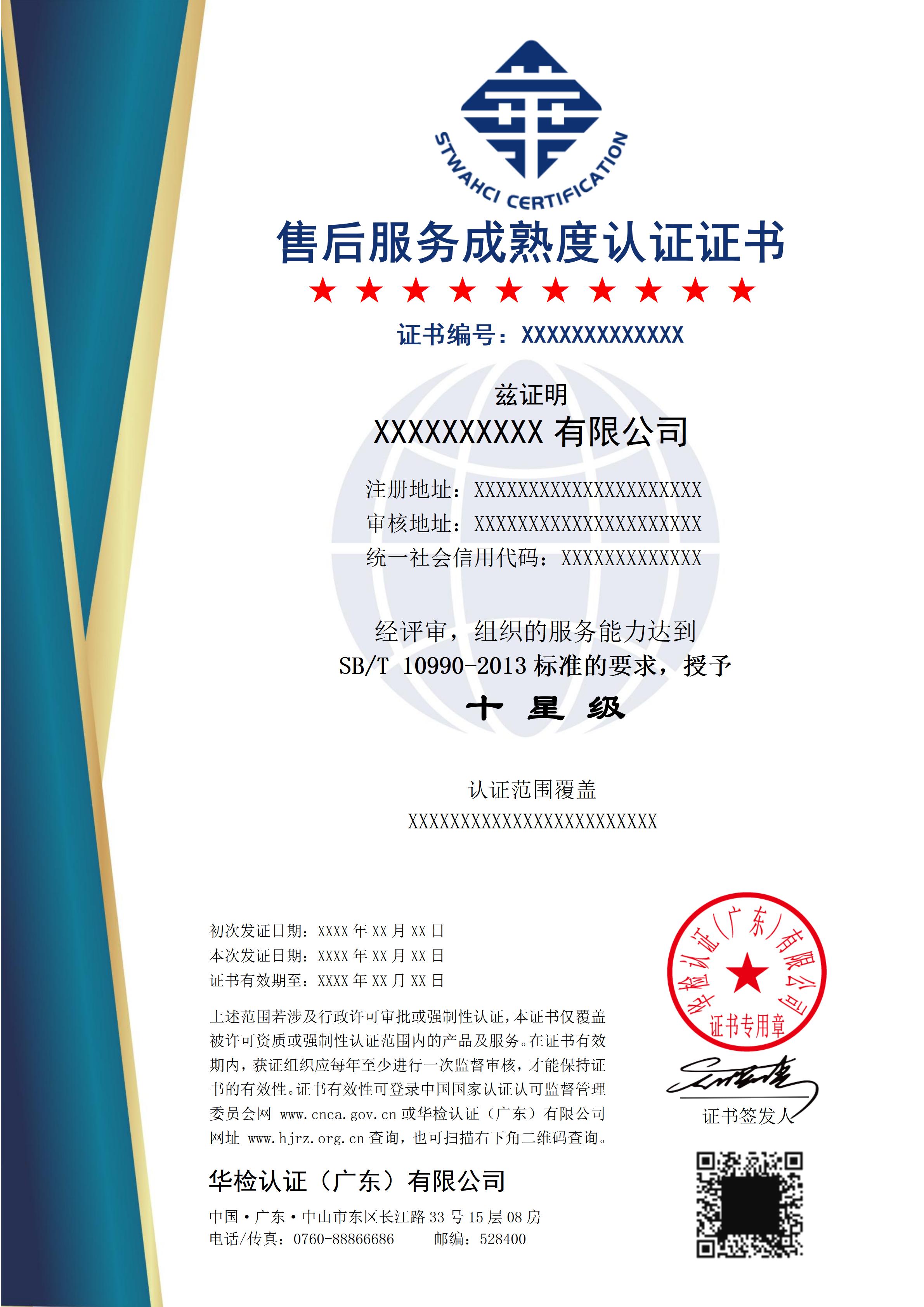 服務(wù)認(rèn)證證書樣式