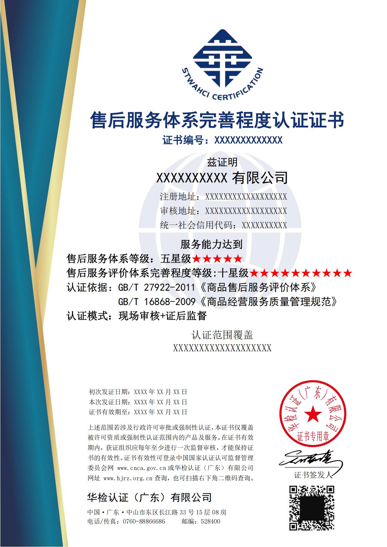 商品售后服務(wù)評(píng)價(jià)認(rèn)證證書(shū)